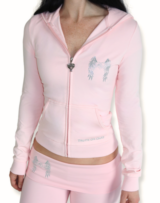 I absolutely adore this jacket , the detailing is perfect down to the glittery wings in the back to the angel truth or dare zipper ❣️ I get so many compliments 100% recommend