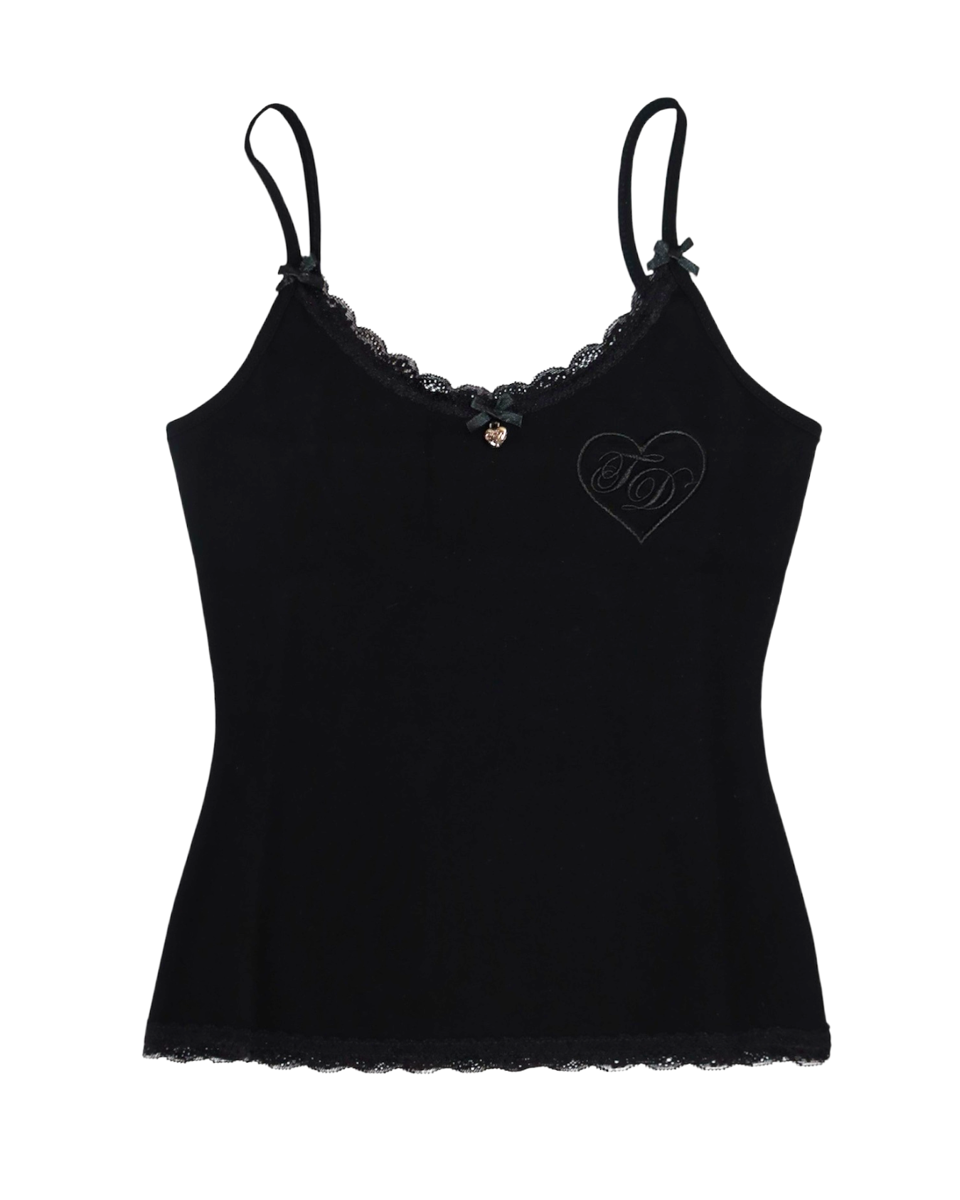 The Classic Black Jade Tank features our flattering fitted tank fit with a scoop neck, lace and embroidery detailing, and a custom Truth or Dare charm.