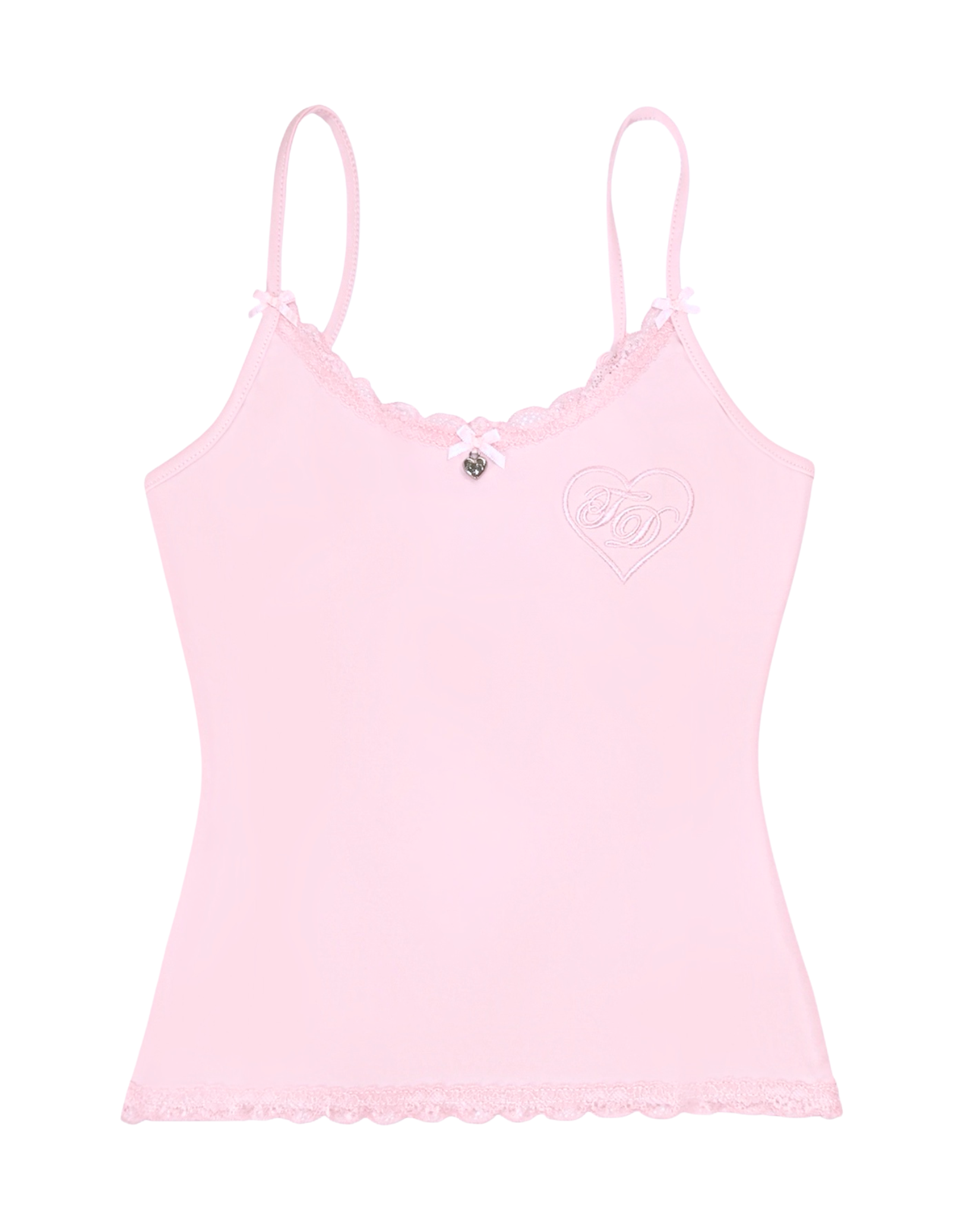 The Classic Pink Jade Tank features our flattering fitted tank fit with a scoop neck, lace and embroidery detailing, and a custom Truth or Dare charm.
