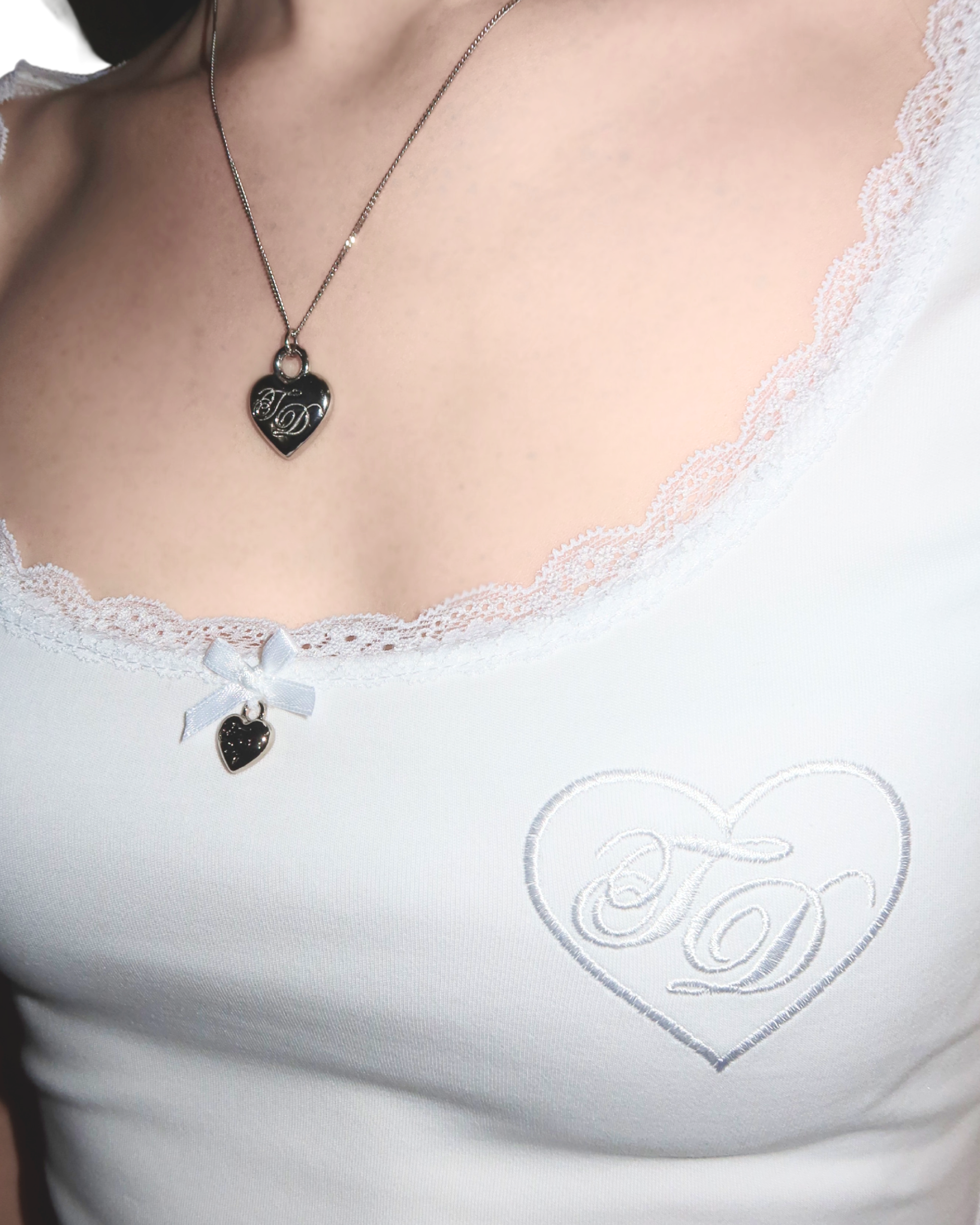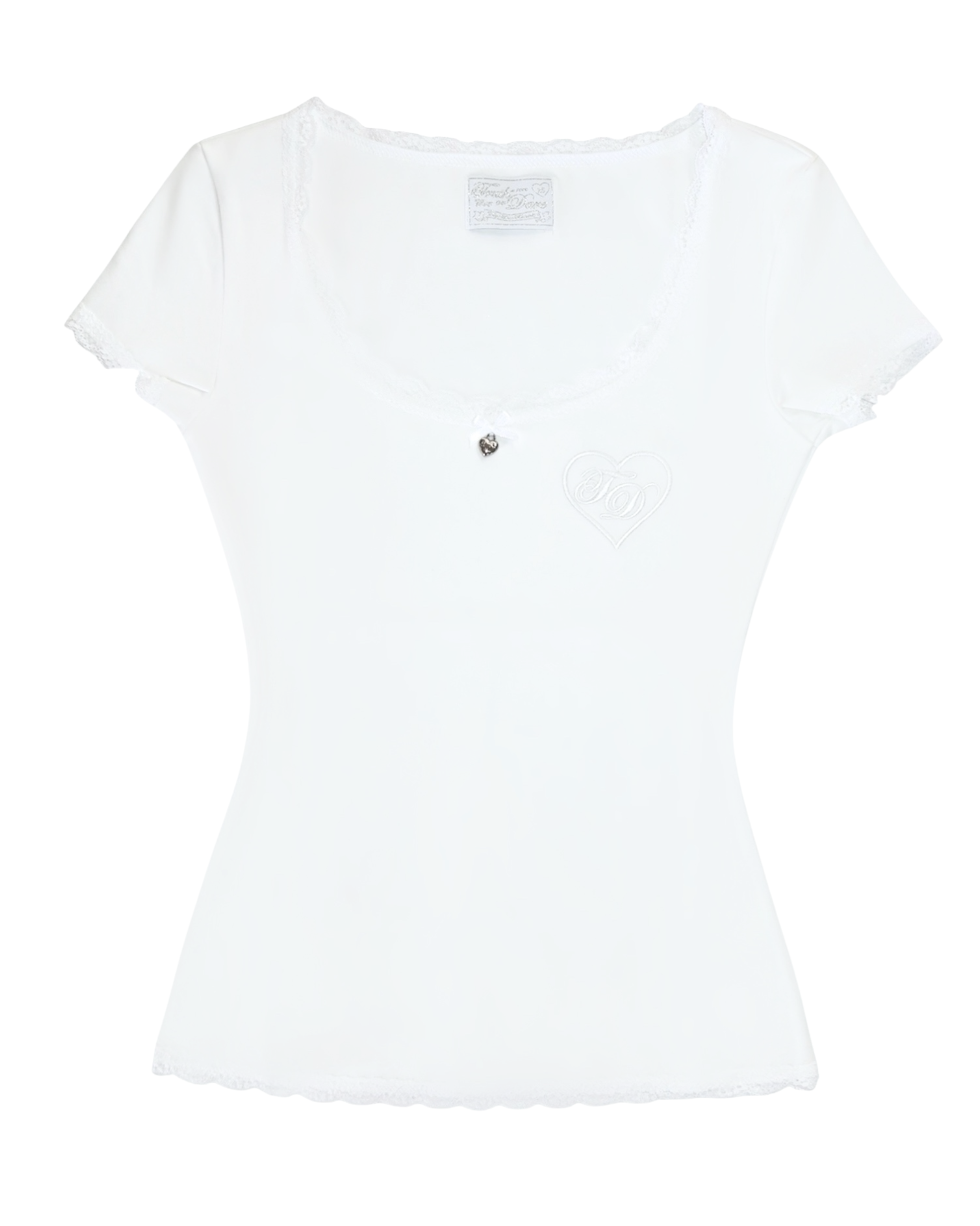 The Classic White Blair features our flattering "Blair" tee fit with a scoop neck, lace and embroidery detailing, and a custom Truth or Dare charm.