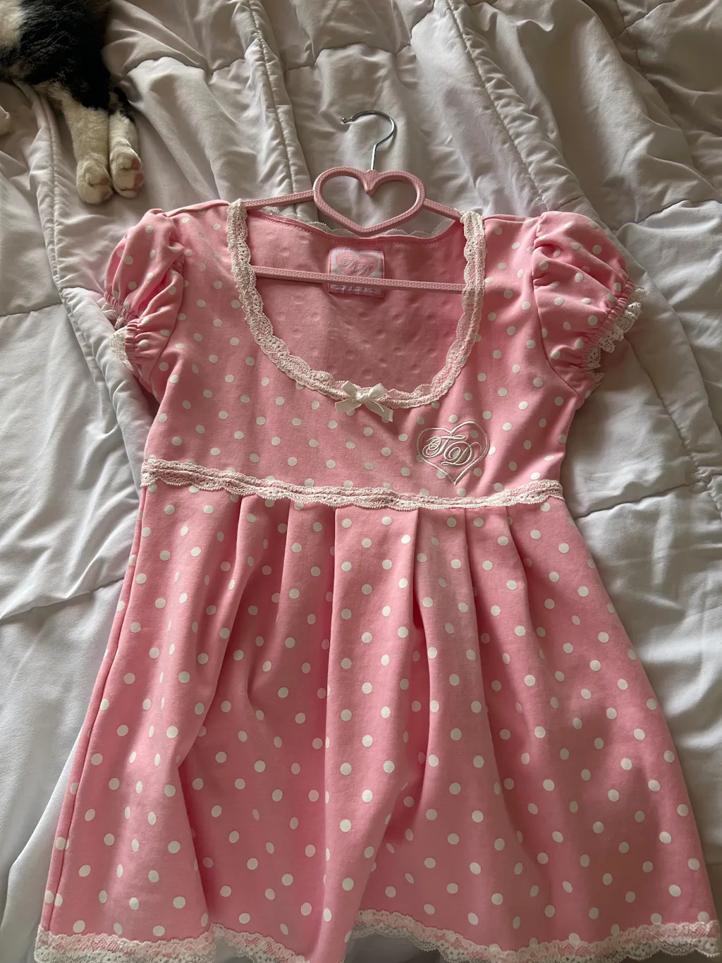 Our scoop neck babydoll top now with puff sleeves in our Strawberries and Cream polka dots! ♡