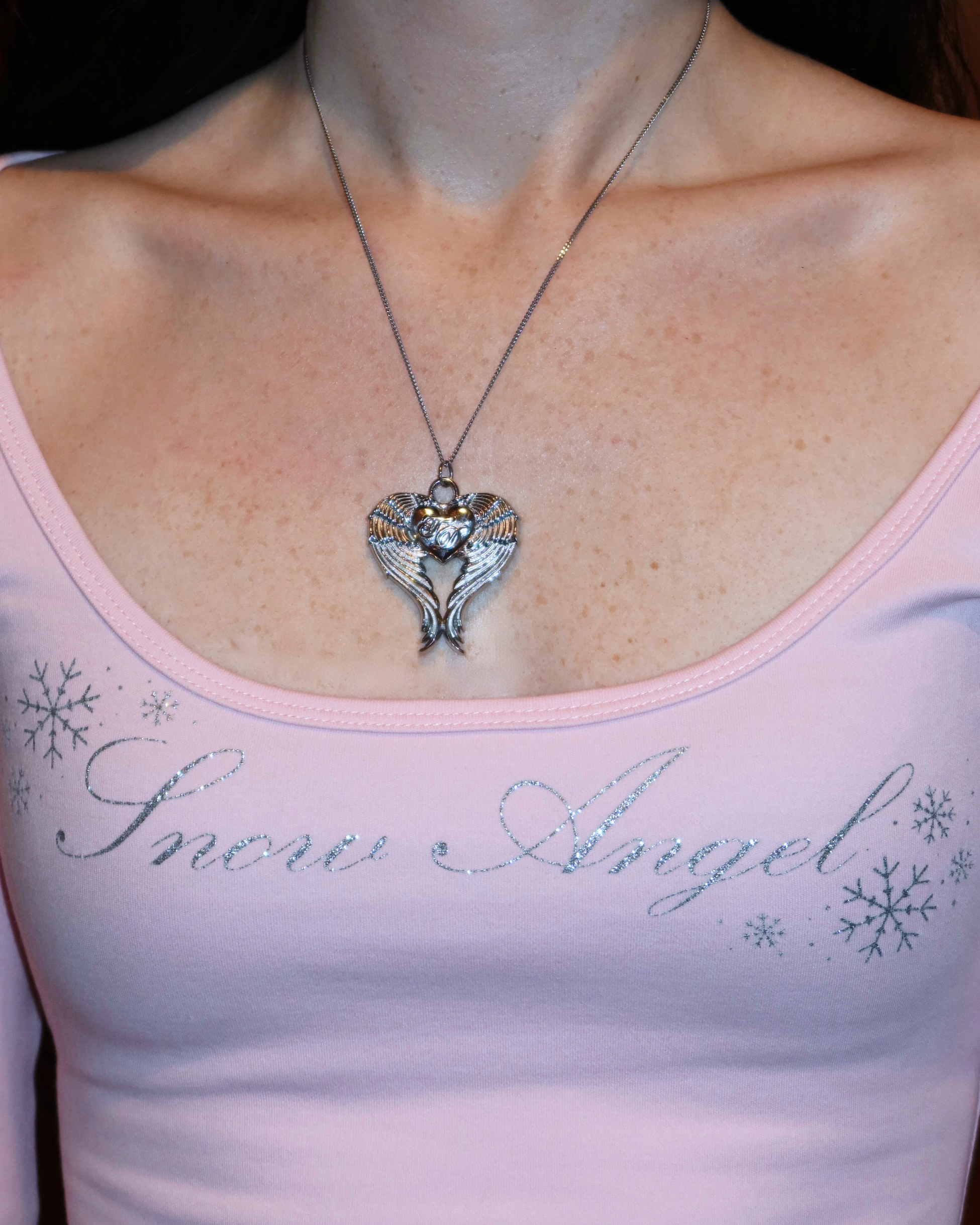 Stainless steel custom angel wing heart pendant on 18" stainless steel chain ♡