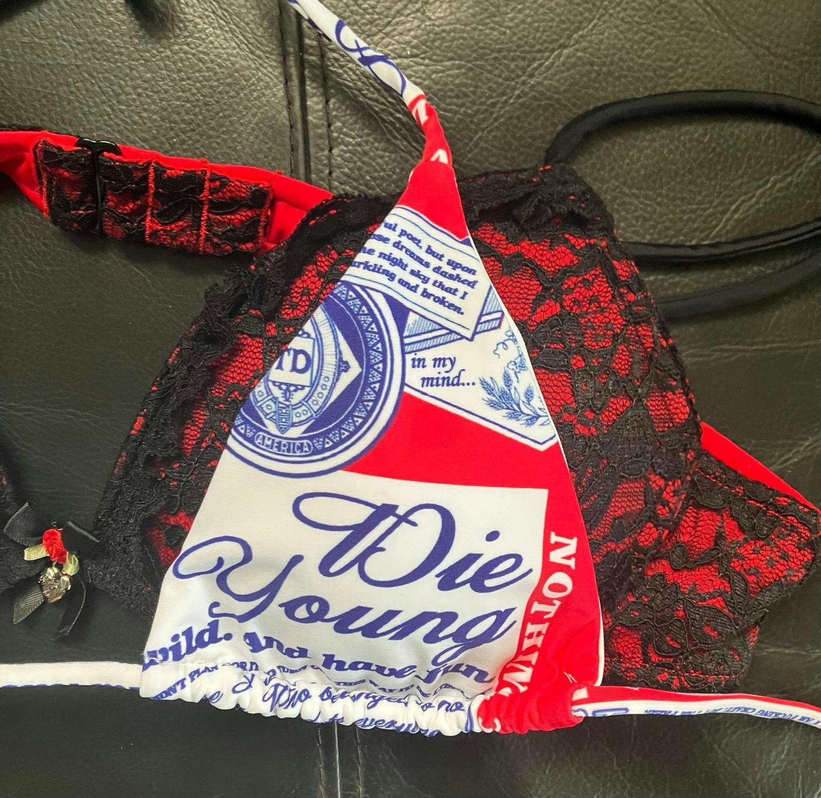 Bikini top with lace overlay, trim, and new custom Truth or Dare heart charm ♡
